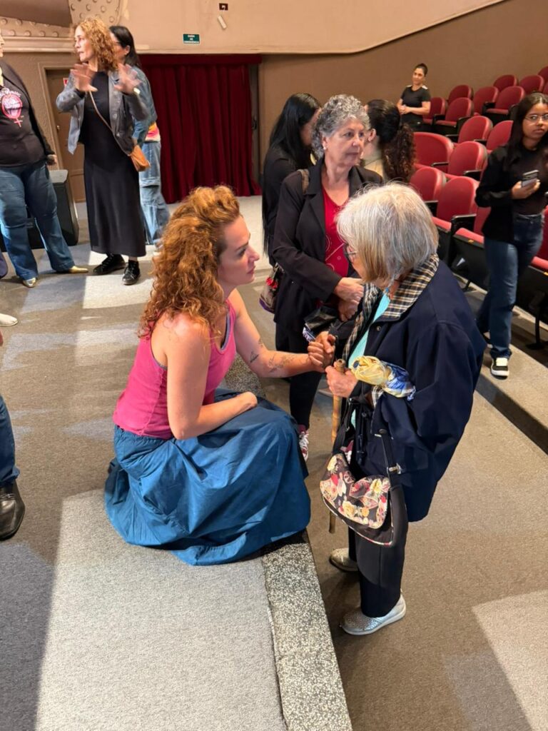 Ao final da apresentação, as alunas do curso de Psicologia participaram de um bate-papo com os atores, ampliando as discussões levantadas pela obra.