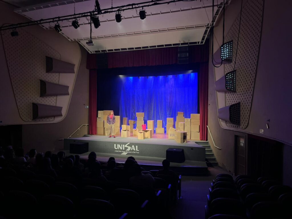 O Teatro São Joaquim, do UNISAL Lorena, recebeu na última sexta-feira, 13 de março, a apresentação da peça Ela, e Algumas Histórias, em uma ação cultural realizada pela Extensão Universitária do UNISAL em parceria com a Secretaria da Mulher de Lorena. O evento reuniu a comunidade acadêmica e o público externo.